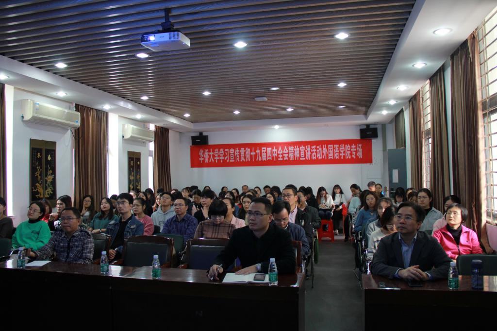 2019年11月26日下午,英国威廉希尔英文党委为学习宣传贯彻十九届四中全会精神,以务实的态度提高党员同志的能力素质和政治觉悟,特邀请威廉希尔williamhill十九届四中全会精神宣讲团专家、政治与公共管理学院徐晞教授做《社会组织如何参与社会治理》专题报告。党委书记谢友福主持报告会,毛浩然院长、郑志民副书记以及学院全体师生党员参加报告会。